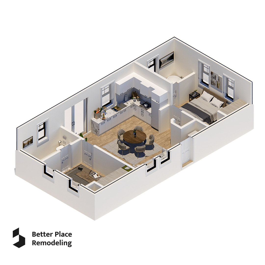 Mesquite is a generously proportioned 800 sq ft ADU with 2 bedrooms and 2 baths, offering comfortable living quarters for residents who value both shared and private spaces. Explore our range of ADU floor plans 800 sq ft to find the perfect fit for your needs.