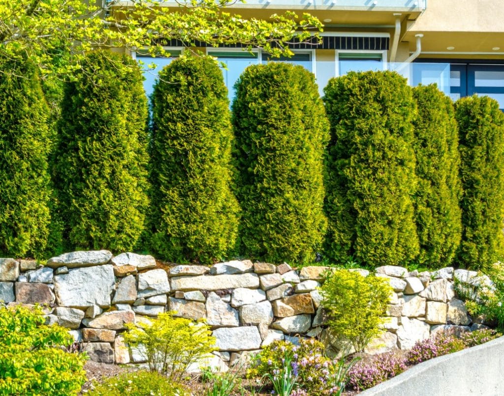 Enhance privacy and aesthetic appeal with eco-friendly solutions like shrubbery and stone landscaping.