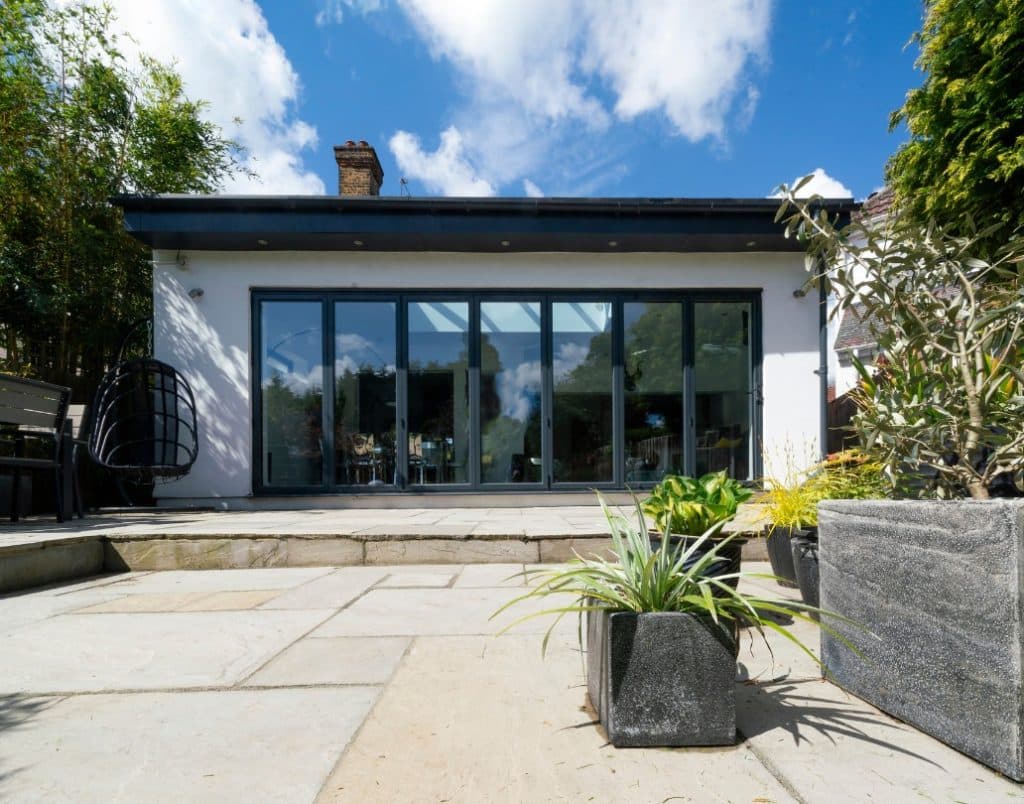 Using large glass doors, such as bi-fold doors, to connect indoor and outdoor spaces. This design element facilitates a natural flow between the interior and exterior, making the living space feel larger and more cohesive.